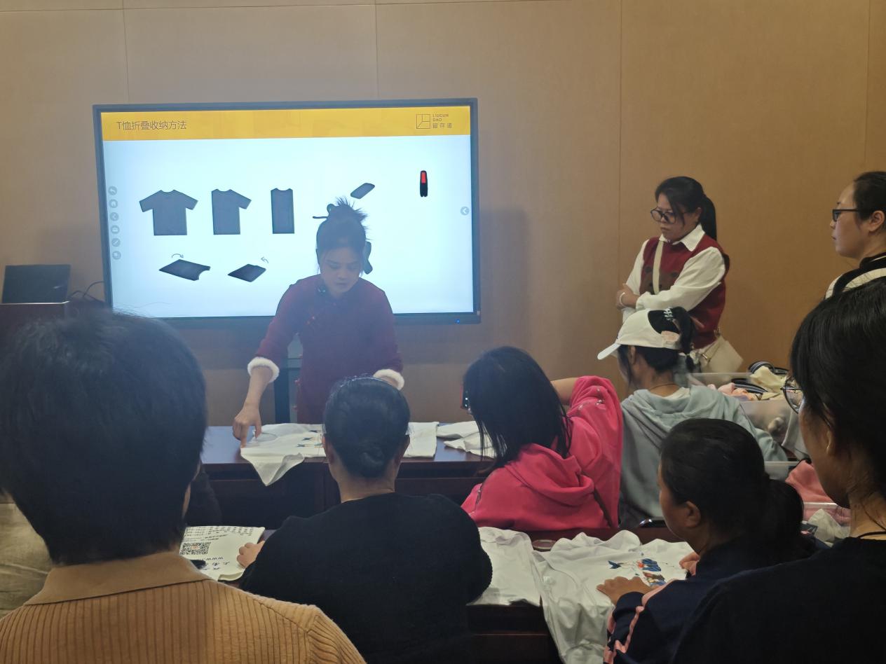 此次培训充分发挥“5+2就业之家”服务基层群众的平台优势,精准对接重点群体技能提升需求。活动特邀江西省整理收纳行业特级讲师。培训伊始,老师从收纳整理行业的概念、意义及市场需求切入,结合自身1000余家入户整理服务经验,用生动案例讲解衣橱空间规划设计方法,让学员直观了解该职业的发展前景;中间配合实操演练环节,讲师现场演示衣物折叠技巧,指导学员分组开展“收纳技能大比拼”,通过亲手实践巩固理论知识,课堂互动氛围热烈,学员参与积极性高涨。